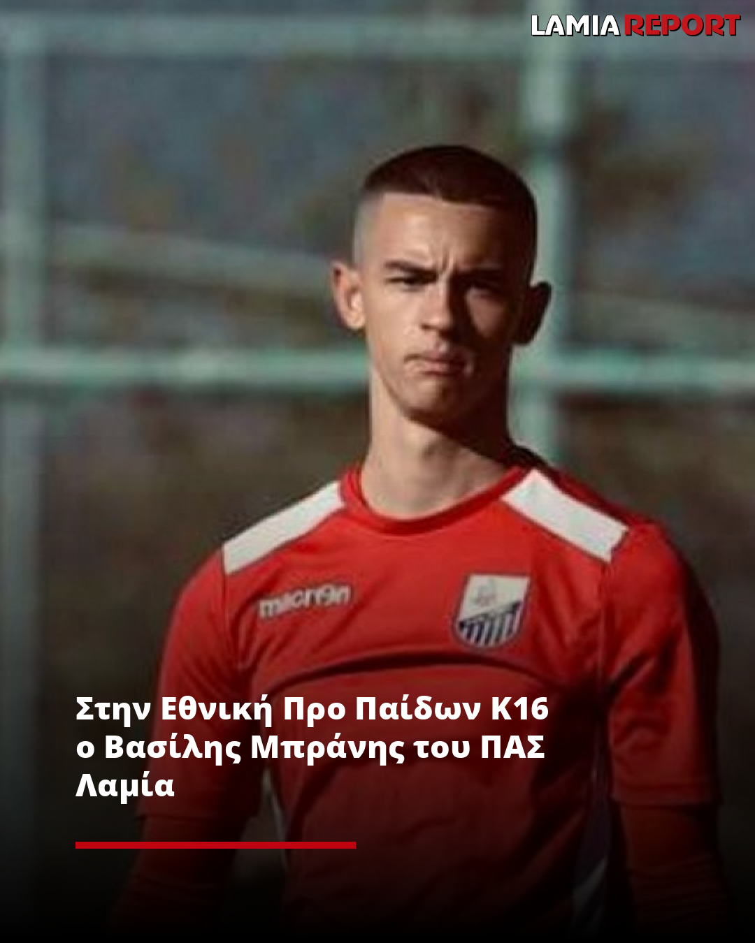 Κλήση στις προπονήσεις προεπιλοyής της Εθνικής Ομάδας Προ-Παιδων Κ16, δέχθηκε ο νεαρός τερματοφύλακας του ΠΑΣ Λαμία 1964, Βασίλης Μπράνης.
