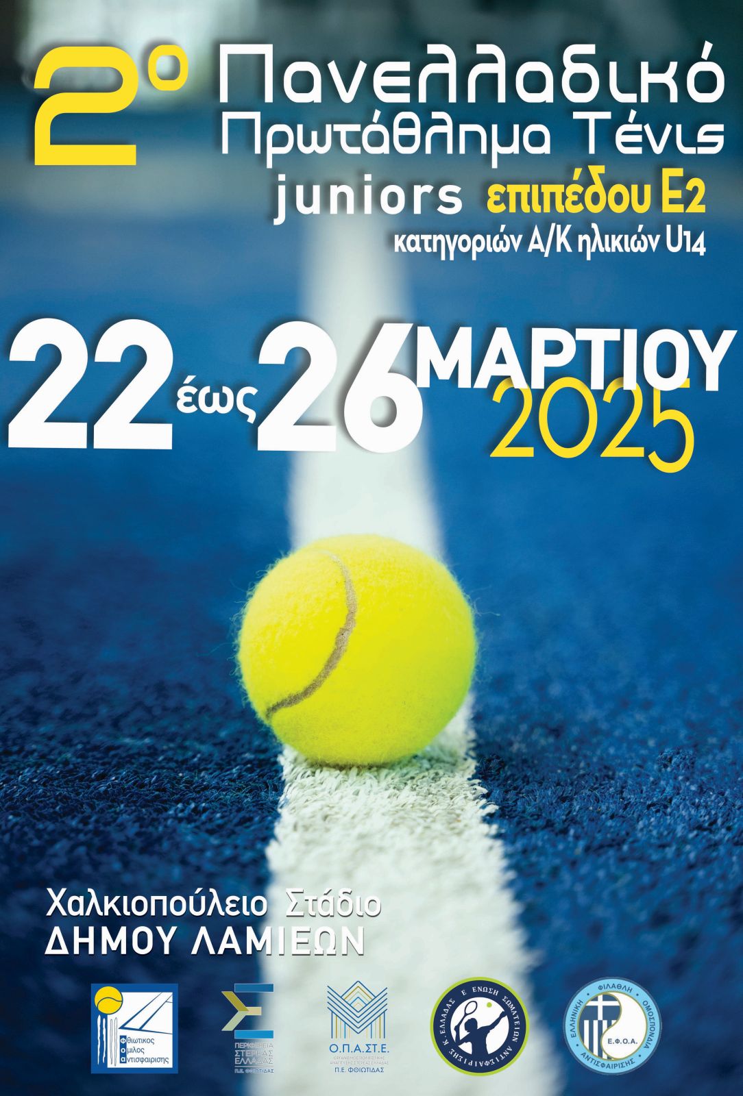 Ο Σύλλογος μας ΦΘΙΩΤΙΚΟΣ ΟΜΙΛΟΣ ΑΝΤΙΣΦΑΙΡΙΣΗΣ μένοντας πιστός στον ρόλο και τη φιλοσοφία του, έχει αναλάβει από την Ε’ Ένωση & την Ε.Φ.Ο.Α. την διοργάνωση του 2ου Πανελλαδικού πρωταθλήματος τένις έτους 2025 , επιπέδου Ε2 κατηγοριών Α/Κ ηλικιών U14 τουρνουά τένις έτους 2025 στις εγκαταστάσεις του “Χαλκοπούλειου Σταδίου” στην Λαμία 22-03-2025 έως 26-03-2025.