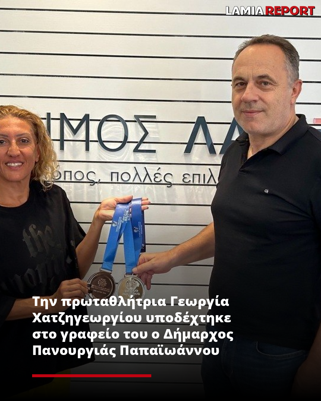 Την πρωταθλήτρια Masters Γεωργία Χατζηγεωργίου με τα μετάλλια της, υποδέχτηκε σήμερα στο Δημαρχείο Λαμίας, ο Δήμαρχος Πανουργιάς Παπαϊωάννου.