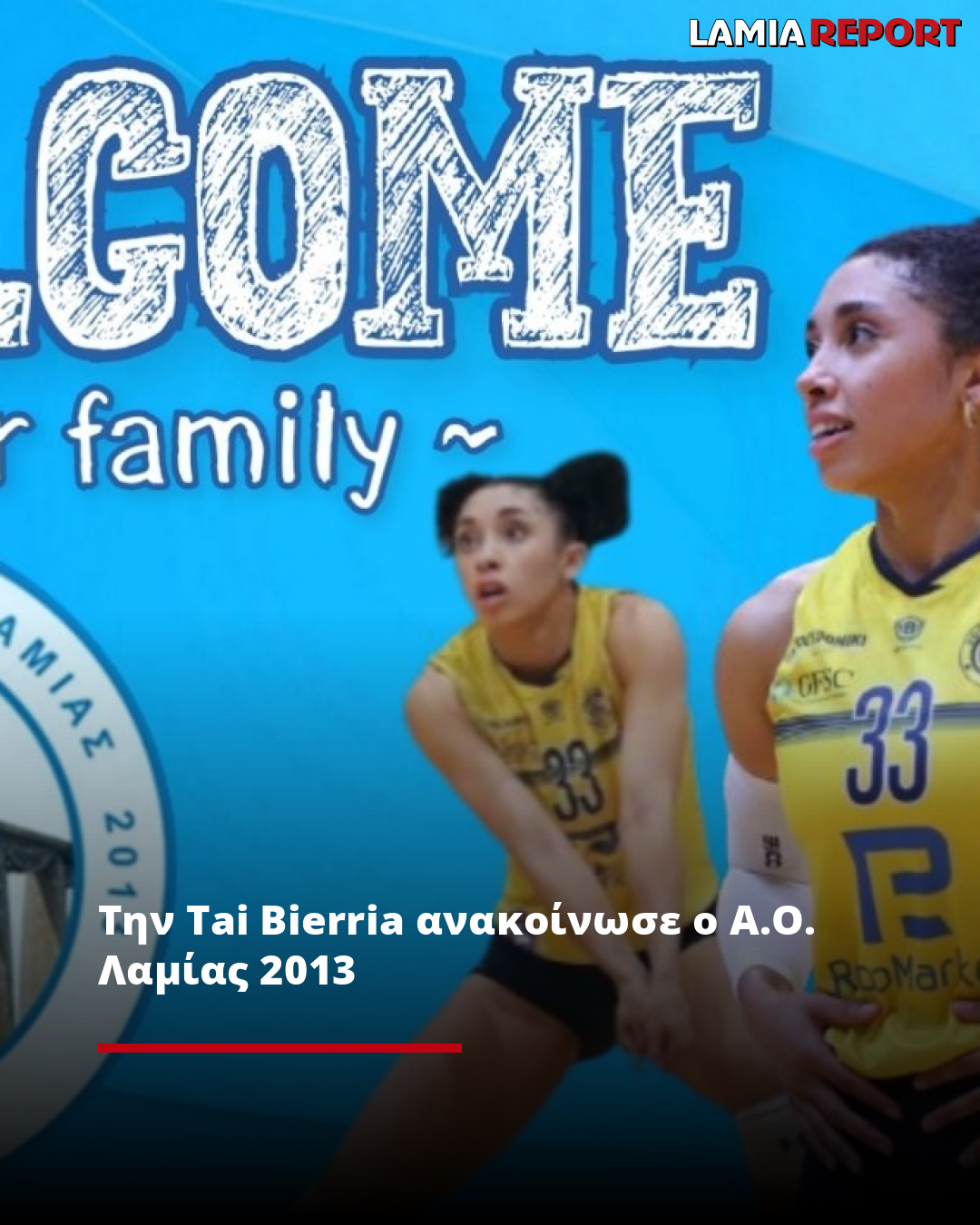 Το Δ.Σ. του «Α.Ο. Λαμίας 2013» ανακοινώνει την έναρξη της συνεργασίας με την αθλήτρια Tai Bierria. Η Tai είναι γεννημένη στην Αμερική στις 3 Σεπτεμβρίου 1997, αγωνίζεται ως «Ακραία» και έχει ύψος 1,87μ..
