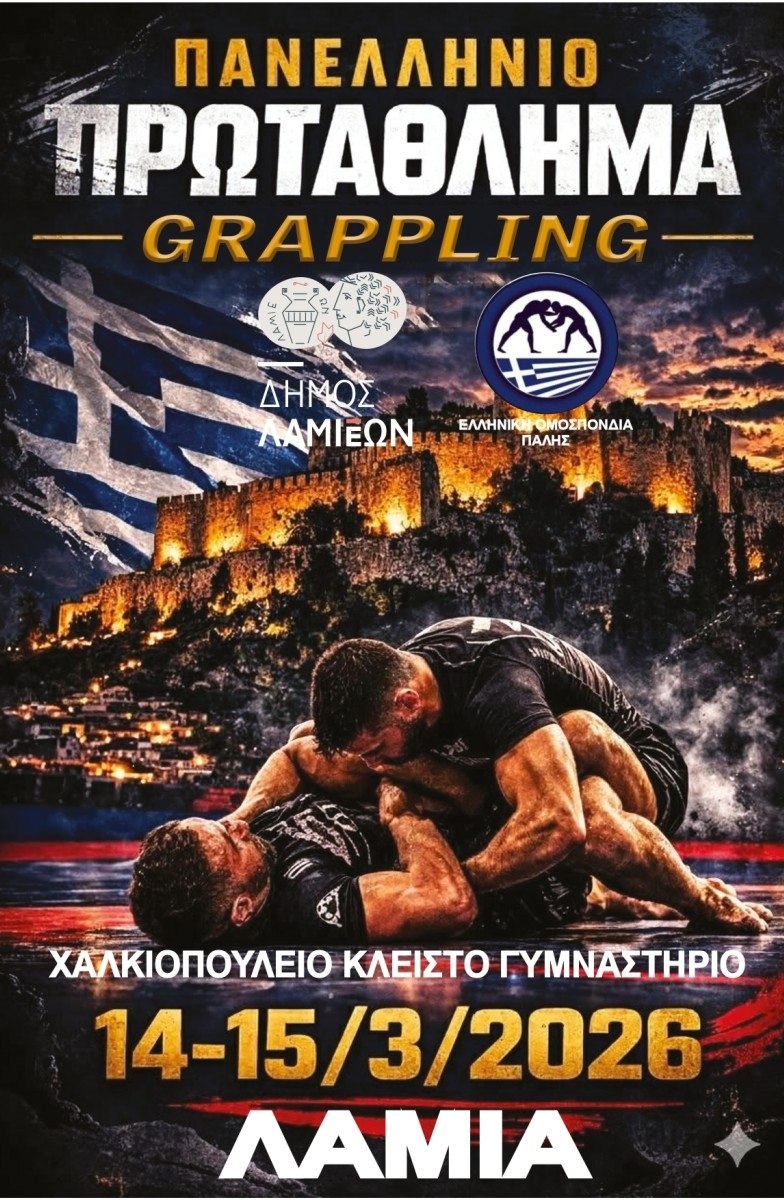 Στη Λαμία θα πραγματοποιηθεί το Σαββατοκύριακο 14 και 15 Μαρτίου 2026 το Πανελλήνιο Πρωτάθλημα Grappling, η κορυφαία διοργάνωση του αθλήματος στην Ελλάδα, που συνδιοργανώνεται από τον Δήμο Λαμιέων και την Ελληνική Ομοσπονδία Πάλης. Οι αγώνες θα φιλοξενηθούν στο Κλειστό Γυμναστήριο Χαλκιοπούλειο, όπου αναμένεται να συγκεντρωθούν αθλητές και αθλήτριες από 35 σωματεία όλης της χώρας.