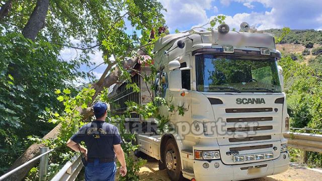 Φθιώτιδα: Πλάτανος έπεσε σε φορτηγό - Δείτε εικόνες