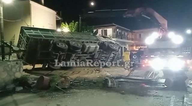 Η ψυχραιμία του οδηγού και η τύχη, βοήθησε ώστε να μη θρηνήσουμε θύματα το βράδυ της Πέμπτης (6/7) στη Λυγαριά Λαμίας, όπου μεγάλο φορτηγό που μετέφερε σιτάρι, τούμπαρε μετά από πρόσκρουση σε μάντρα.