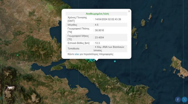 Ο νέος σεισμός ήταν μεγέθους 4,5 Ρίχτερ και καταγράφηκε το πρωί στις 05:02 στην Εύβοια, στην Ιστιαία.