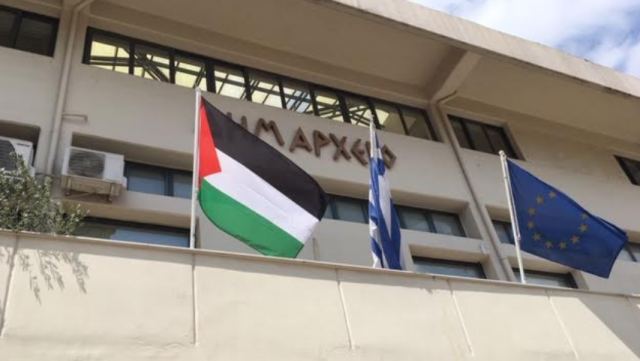 Έπαρση της σημαίας της Παλαιστίνης στο Δημαρχείο της Αταλάντης.