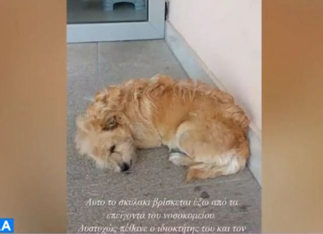 Υπομονετικά περίμενε έξω από την είσοδο στα επείγοντα του νοσοκομείου Τρικάλων ένας σκύλος τον ιδιοκτήτη του, ο οποίος ωστόσο έφυγε από τη ζωή.