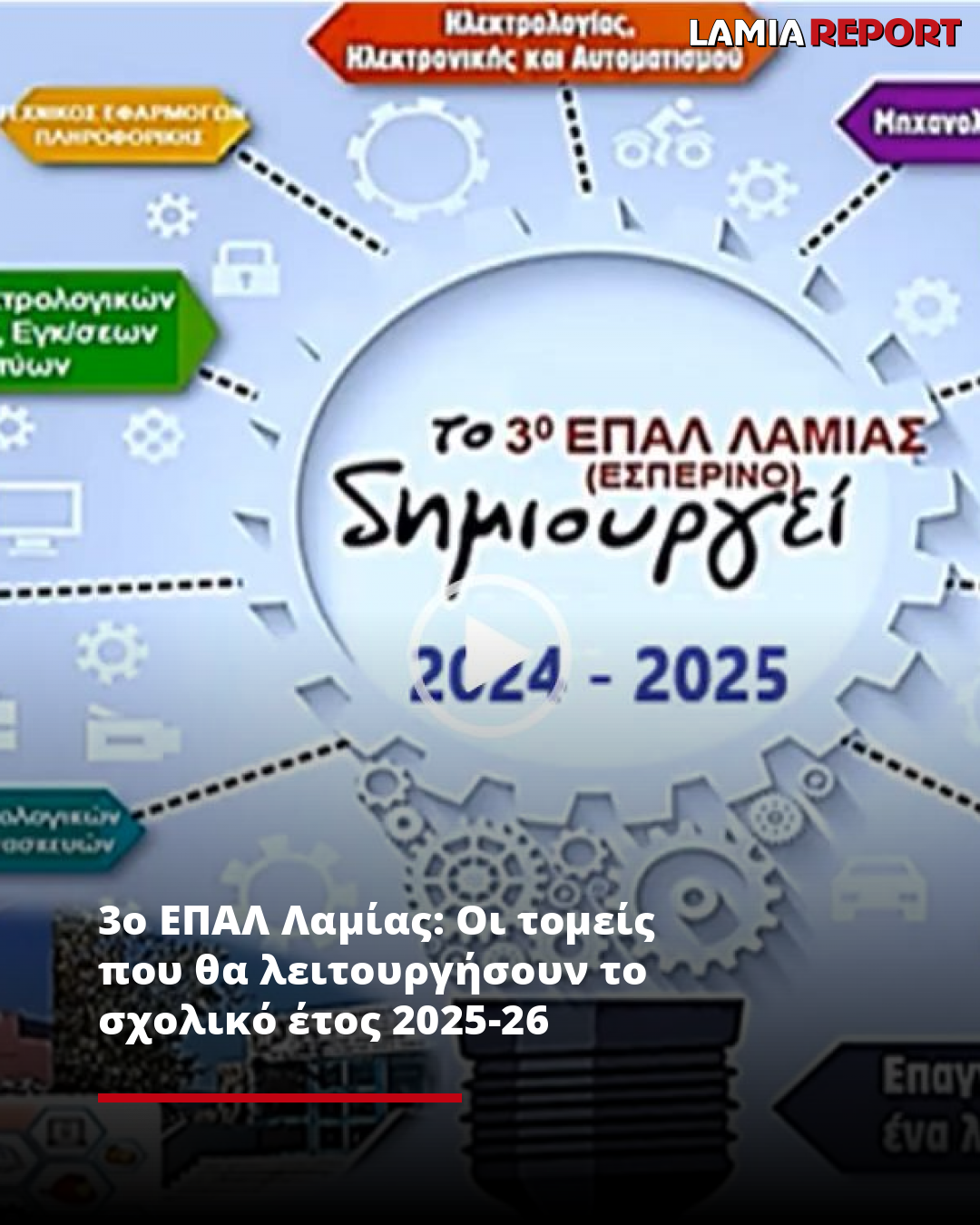 3ο ΕΠΑΛ Λαμίας: Οι τομείς που θα λειτουργήσουν το σχολικό έτος 2025-26
