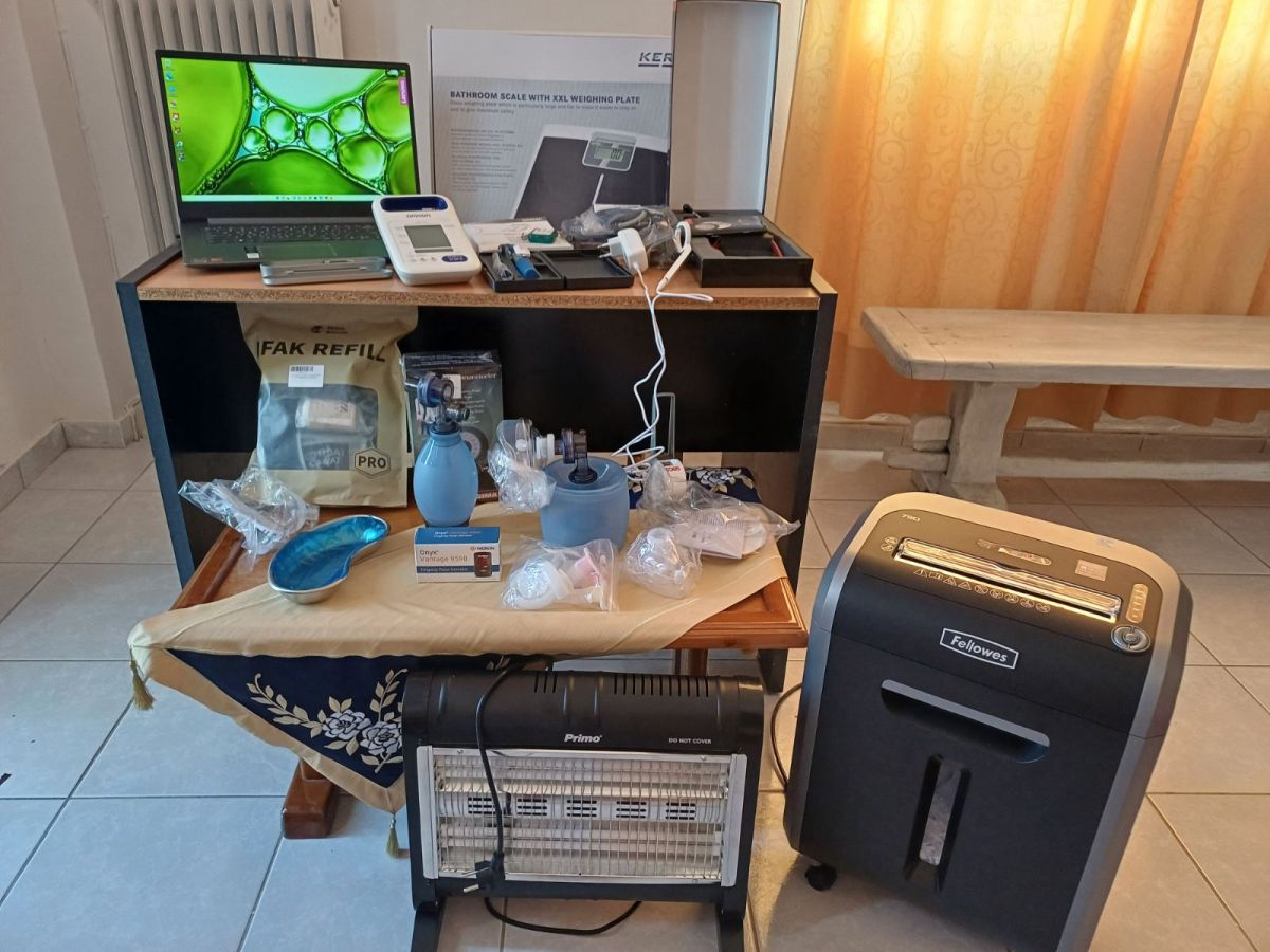 Μέσω της χορηγίας το ιατρείο εφοδιάστηκε επιπρόσθετα με έτερα είδη, όπως υπερσύγχρονο φορητό υπολογιστή Lenovo, θερμάστρα, φωτιστικό γραφείου και καταστροφέα εγγράφων τελευταίας τεχνολογίας.