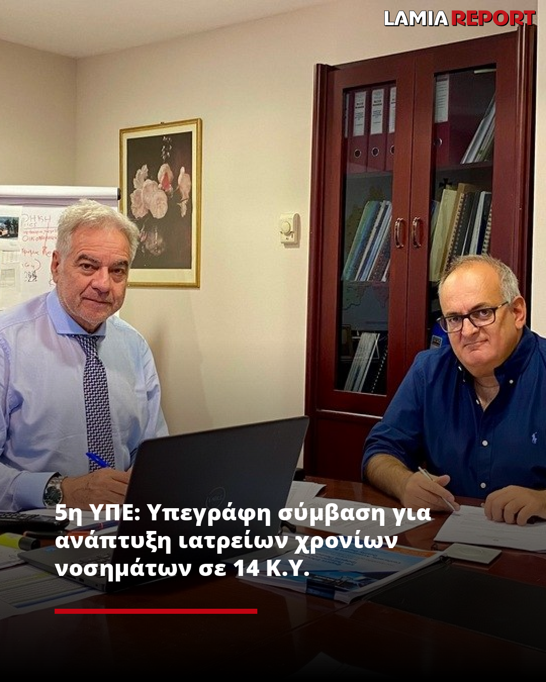 Ο Διοικητής της 5ης Υγειονομικής Περιφέρειας Θεσσαλίας και Στερεάς Ελλάδας Φώτης Σερέτης, υπέγραψε την Σύμβαση για την εκτέλεση του έργου «ΑΝΑΠΤΥΞΗ ΙΑΤΡΕΙΩΝ ΔΙΑΧΕΙΡΙΣΗΣ ΧΡΟΝΙΩΝ ΝΟΣΗΜΑΤΩΝ ΣΕ 14 ΚΕΝΤΡΑ ΥΓΕΙΑΣ ΤΗΣ 5ΗΣ ΥΠΕ» προϋπολογισμού 252.765,58€ (πλέον ΦΠΑ), που υλοποιείται στο πλαίσιο του Εθνικού Σχεδίου Ανάκαμψης και Ανθεκτικότητας «Ελλάδα 2.0» με τη χρηματοδότηση της Ευρωπαϊκής Ένωσης – Next Generation EU.