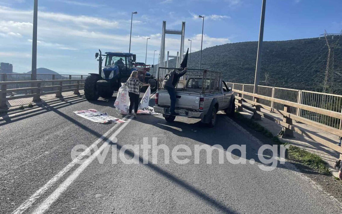 Αγρότες έκλεισαν αιφνιδιαστικά την υψηλή γέφυρα Χαλκίδας