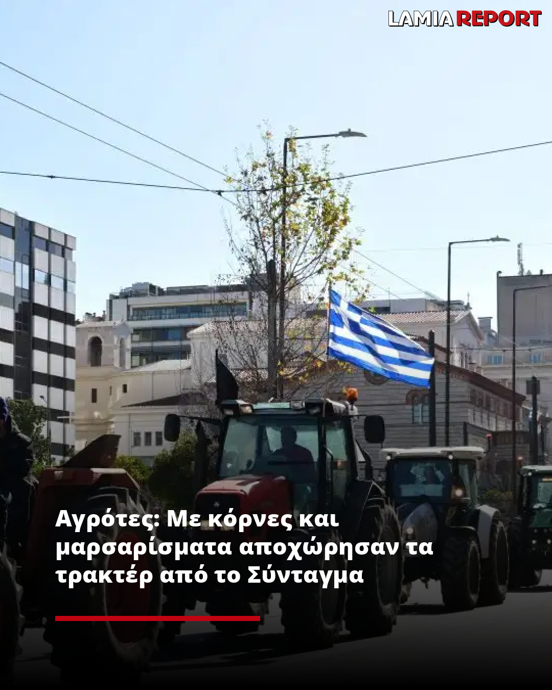 Με κόρνες, ντουντούκες και μαρσαρίσματα οι αγρότες με τα τρακτέρ αποχώρησαν από την πλατεία του Συντάγματος το πρωί του Σαββάτου (14.2.26).