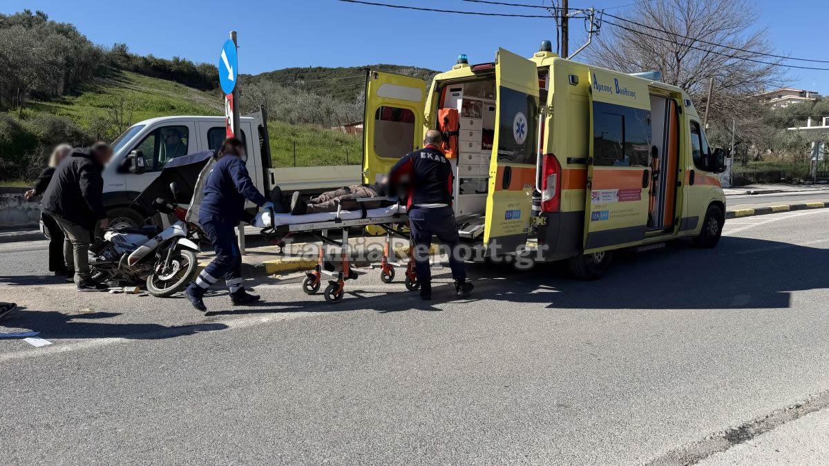 Ο νεαρός δικυκλιστής, που ευτυχώς φορούσε κράνος, τραυματίστηκε ελαφρά και διακομίστηκε με ασθενοφόρο του ΕΚΑΒ στα Επείγοντα του ΓΝ Λαμίας.