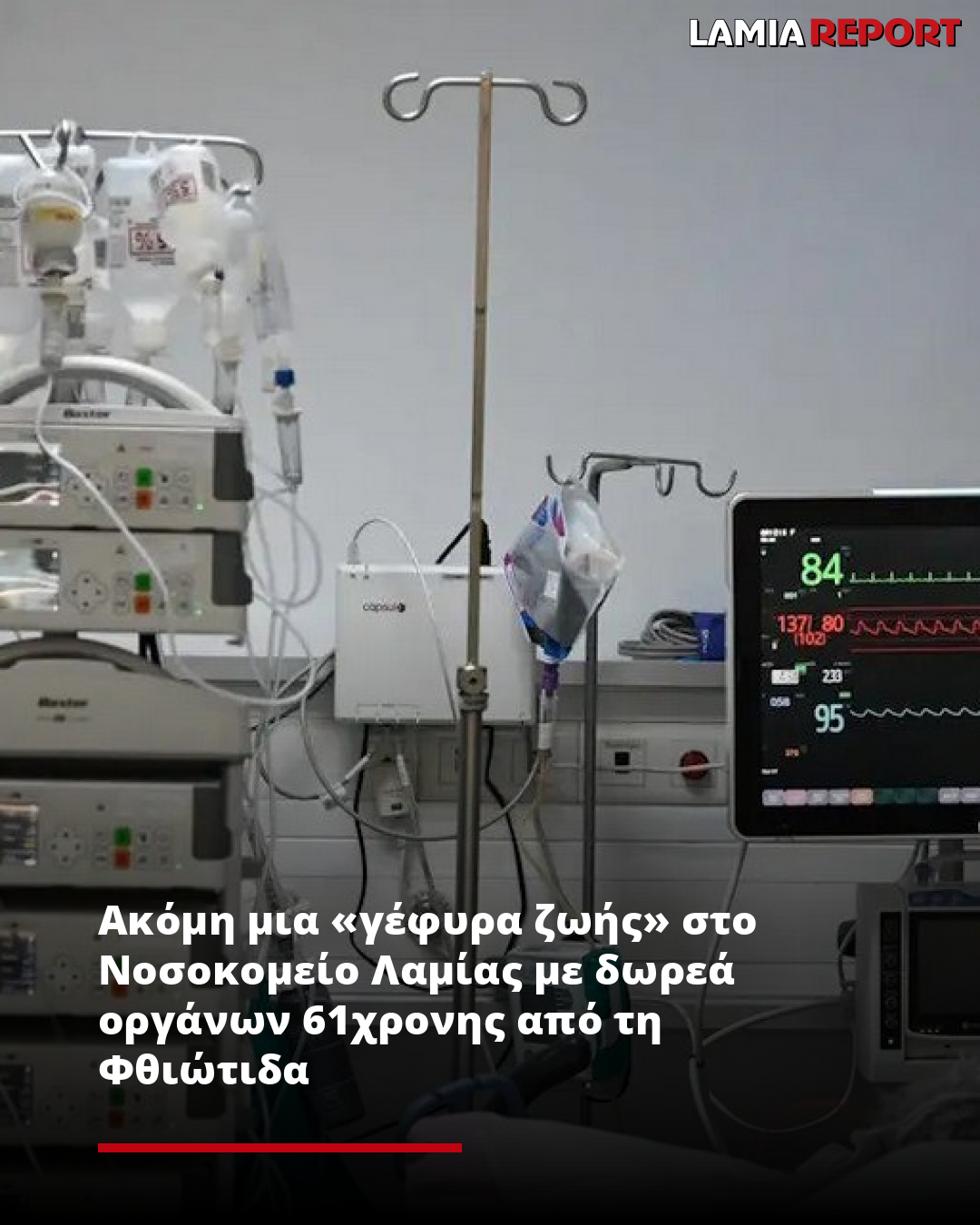 Ακόμη μια «γέφυρα ζωής» στο Νοσοκομείο Λαμίας με δωρεά οργάνων 61χρονης από τη Φθιώτιδα