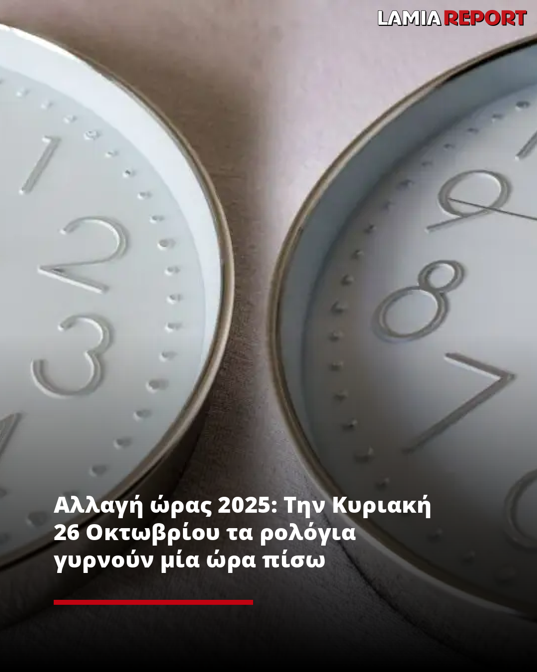 Αλλαγή ώρας 2025: Την Κυριακή 26 Οκτωβρίου τα ρολόγια γυρνούν μία ώρα πίσω