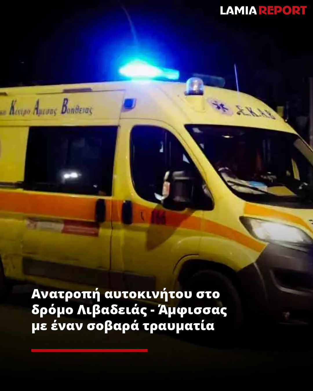 Ανατροπή αυτοκινήτου στο δρόμο Λιβαδειάς - Άμφισσας με έναν σοβαρά τραυματία