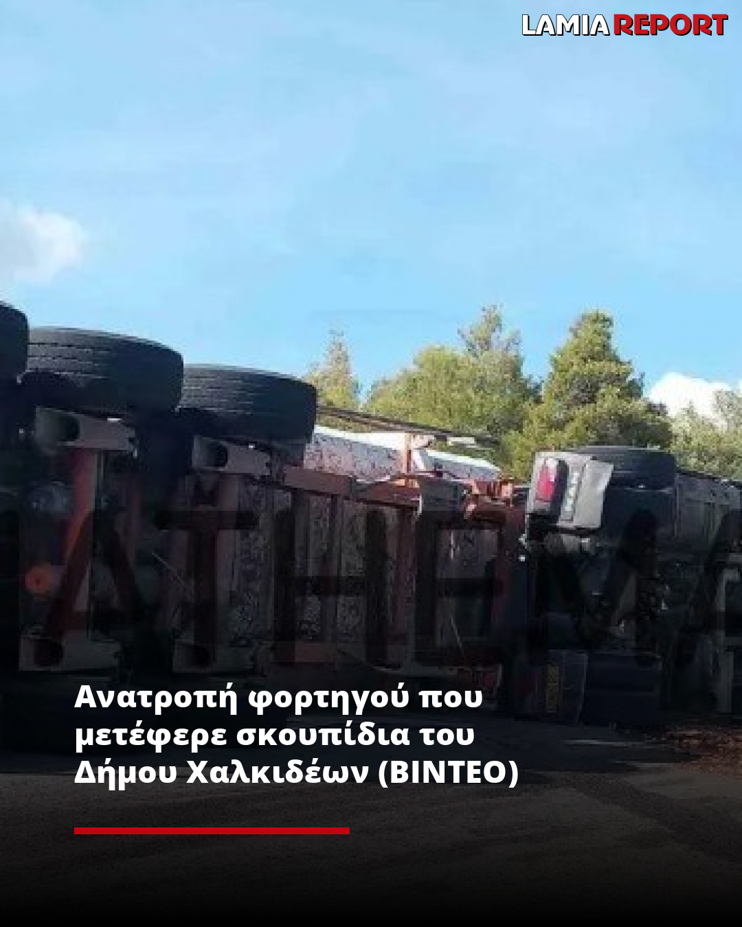 Ανατροπή φορτηγού που μετέφερε σκουπίδια του Δήμου Χαλκιδέων (ΒΙΝΤΕΟ)