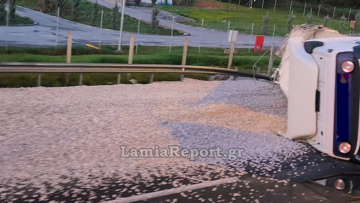 Ανατροπή νταλίκας στην εθνική - Κλειστές δύο λωρίδες κυκλοφορίας λίγο πριν το Σείριο (ΒΙΝΤΕΟ)