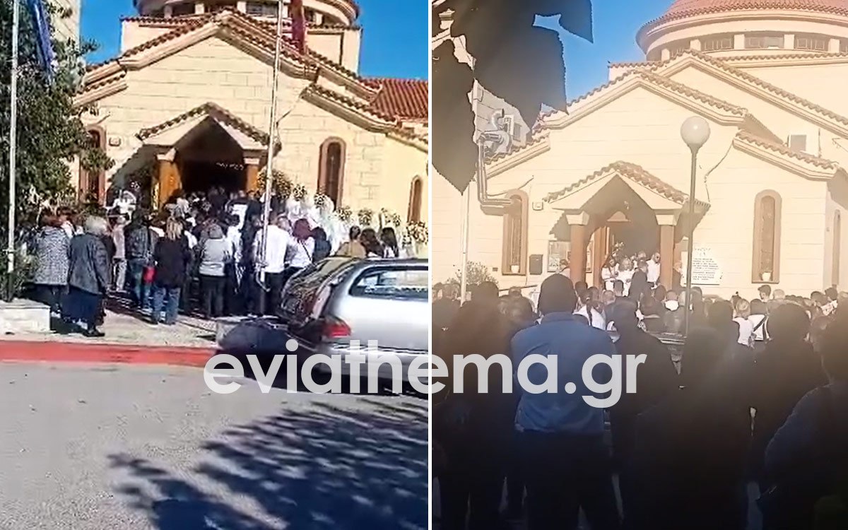 Στον Ιερό Ναό Πέτρου και Παύλου στη Χαλκίδα, από νωρίς το μεσημέρι έφτασε πλήθος κόσμου, συγγενείς και φίλοι, γνωστοί και άγνωστοι που ήθελαν να αφήσουν ένα λουλούδι και να αποχαιρετίσουν το αγαπητό παλληκάρι.