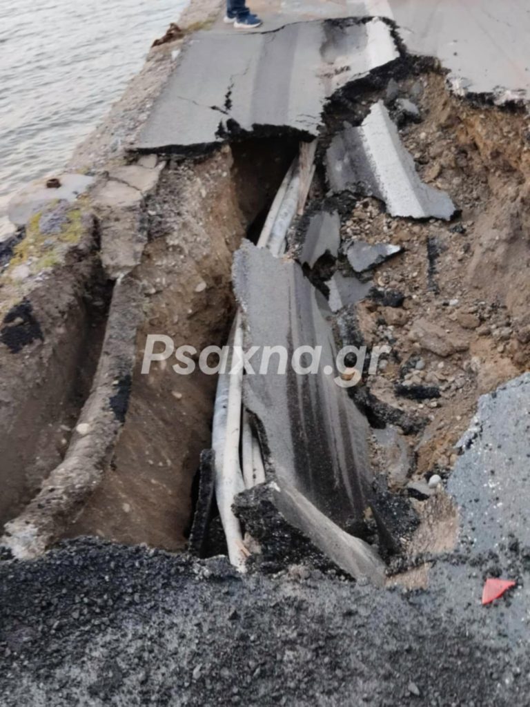 Πρόκειται για επισκευή τμήματος του παραλιακού δρόμου που είχε παρουσιάσει καθίζηση (έπειτα από πρόσφατη ασφαλτόστρωση).