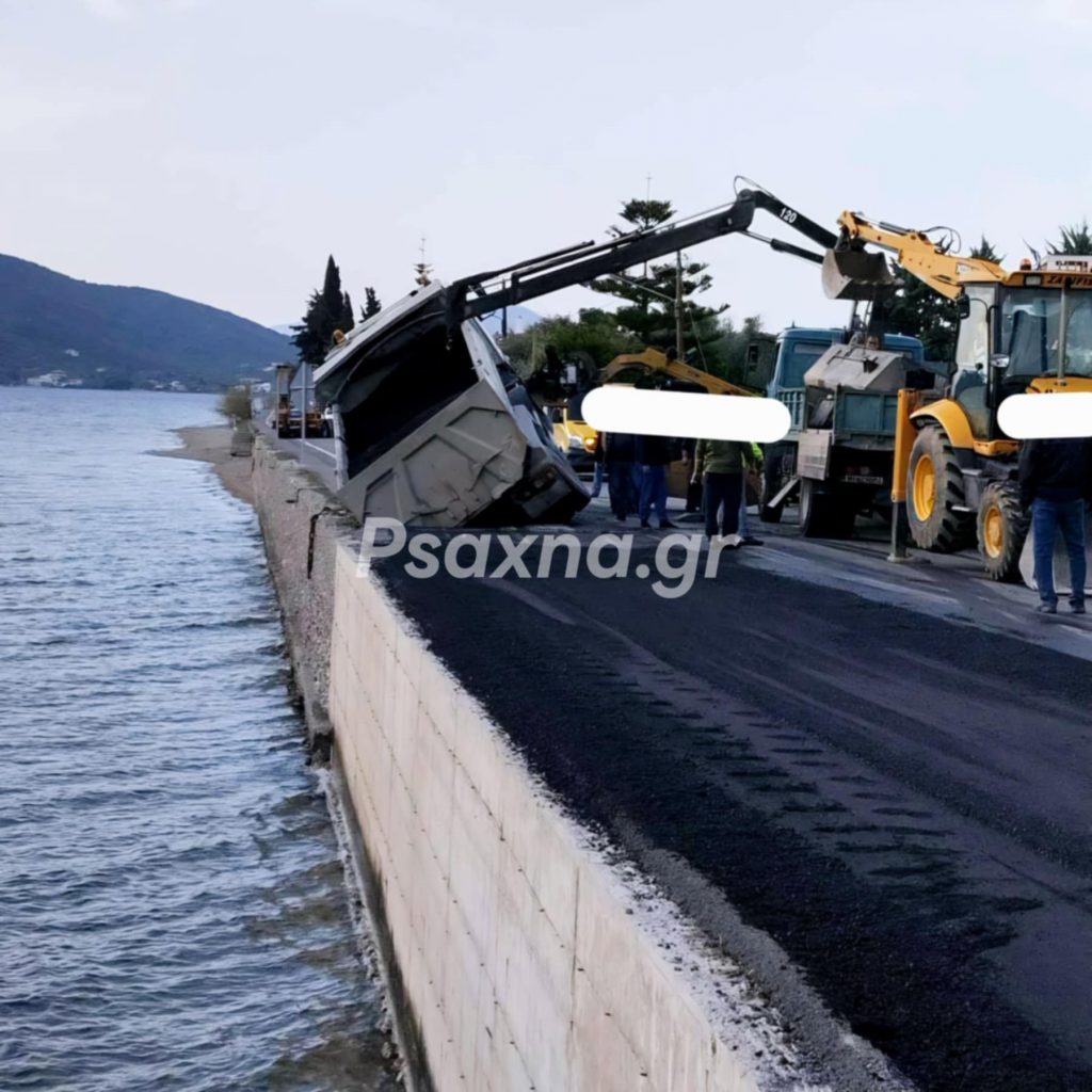 Είχε μόλις ξεκινήσει η ασφαλτόστρωση και στα πρώτα μέτρα ο δρόμος υποχώρησε και το φορτηγό που μετέφερε ασφαλτόμιγμα βρέθηκε στο κενό…