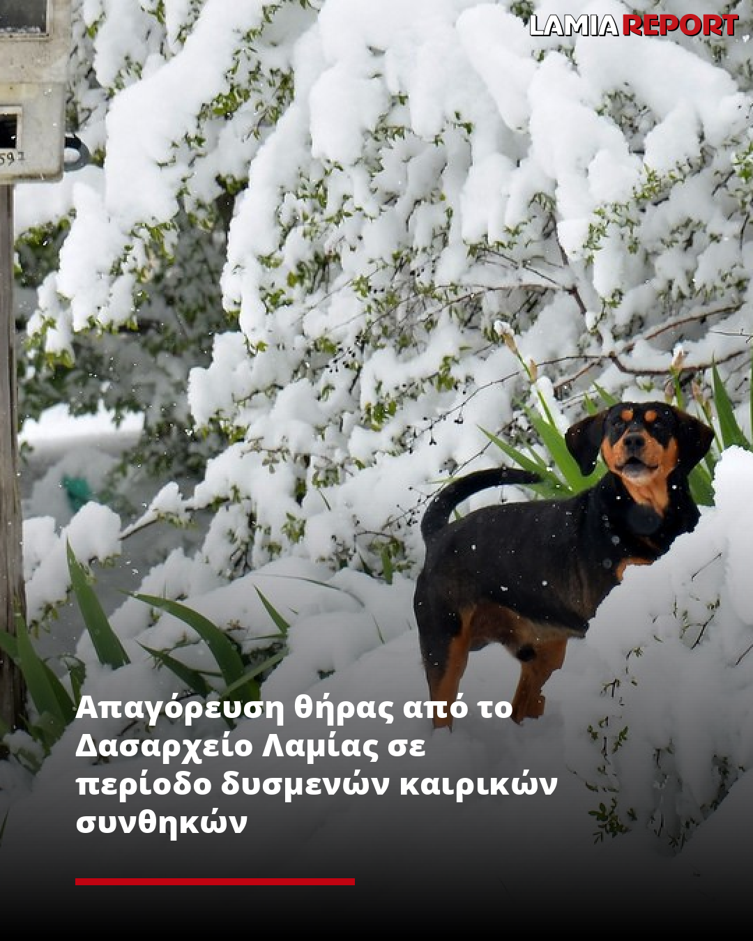 «Απαγορεύουμε τη θήρα παντός θηράματος (τριχωτών, πτερωτών) στην περιοχή αρμοδιότητάς μας (Δασαρχείο Λαμίας ) κατά τη διάρκεια της κυνηγετικής περιόδου 2025-2026 σε περιπτώσεις εμφάνισης ακραίων καιρικών φαινομένων, που έχουν κύριο χαρακτηριστικό την χιονόπτωση μεγάλης διάρκειας και έντασης, τον παγετό, τους δυνατούς ανέμους κ.α. και καθιστούν τα είδη της άγριας πανίδας ευάλωτα και ανήμπορα να αναπτύξουν τις ικανότητες άμυνας και διαφυγής, ως δικαίωμα αρχής στα πλαίσια άσκησης της θήρας […] Η παρούσα ισχύει από την έκδοσή της και μέχρι το τέλος της κυνηγετικής περιόδου 2025-2026.