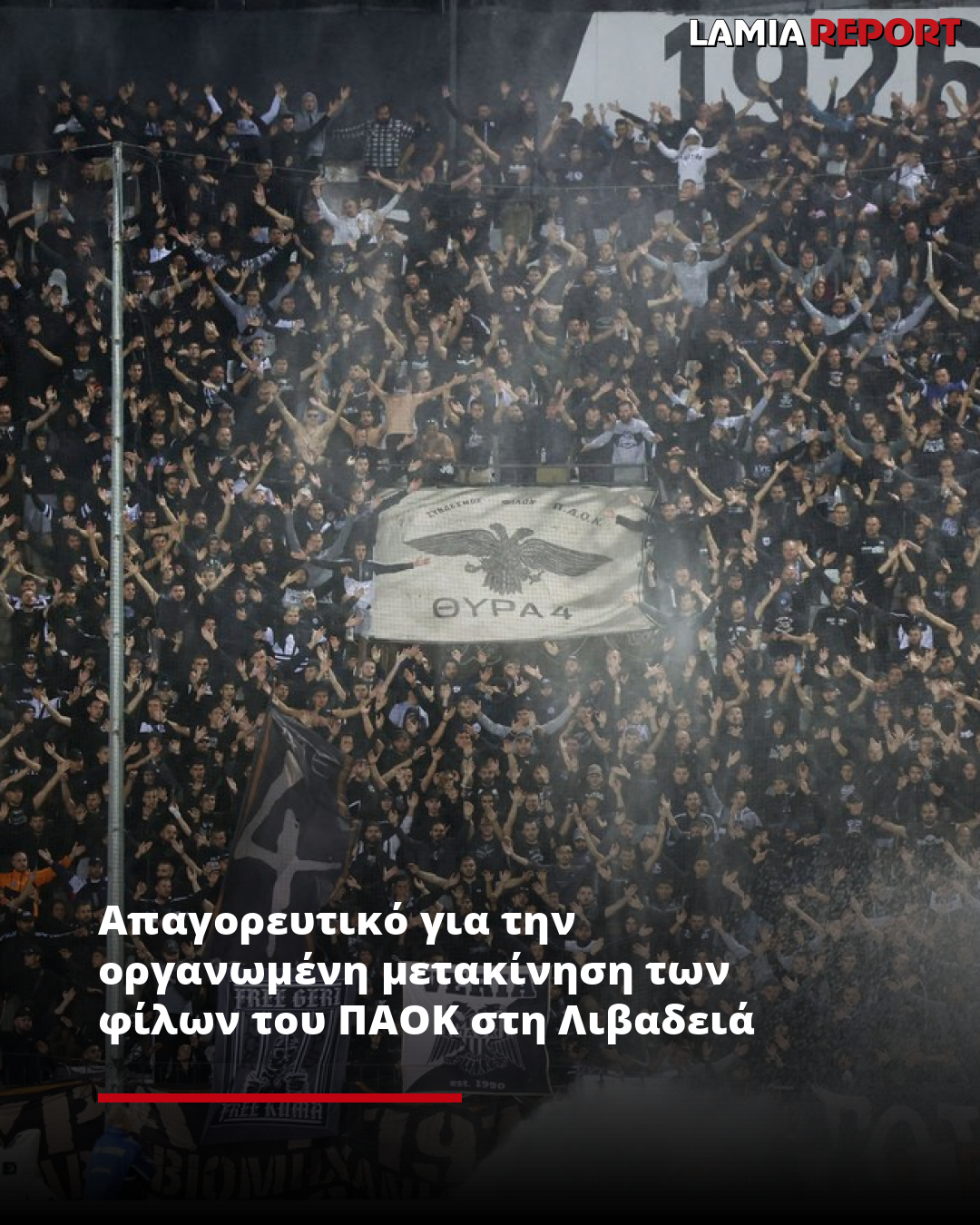 Από τη Γενική Περιφερειακή Αστυνομική Διεύθυνση Στερεάς Ελλάδας ανακοινώθηκε ότι, σύμφωνα με Απόφαση που εκδόθηκε από το Υπουργείο Παιδείας, Θρησκευμάτων και Αθλητισμού, απαγορεύεται η οργανωμένη μετακίνηση των φιλάθλων της φιλοξενούμενης ομάδας Π.Α.Ε. ΠΑΟΚ, καθώς και η διάθεση εισιτηρίων σε αυτούς, για τον ποδοσφαιρικού αγώνα της 7ης αγωνιστικής του πρωταθλήματος SUPER LEAGUE 1, περιόδου 2024-2025, με το Λεβαδειακό.