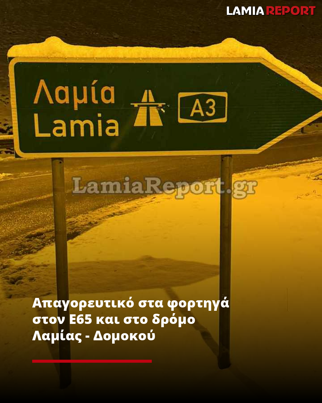 Την προσωρινή και πλήρη διακοπή της κυκλοφορίας παντός είδους βαρέως οχήματος μέγιστου επιτρεπόμενου βάρους άνω των 3,5 τόνων, ανεξαρτήτως χρήσεως αντιολισθητικών αλυσίδων, στον Ε65, αποφάσισε η Διεύθυνση Αστυνομίας Φθιώτιδας, για ιδιαίτερους λόγους ασφαλείας.