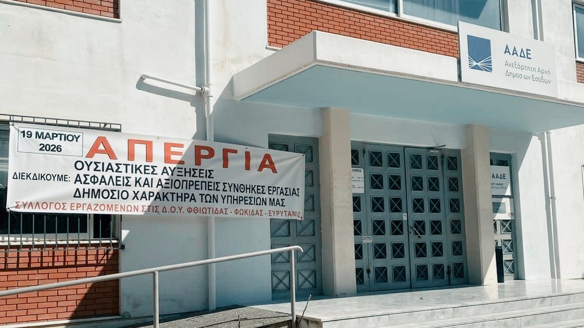 Στην κλαδική πανελλαδική απεργία της ΠΟΕ-ΔΟΥ την Πέμπτη 19 Μαρτίου 2026, συμμετέχουν οι εργαζόμενοι στις ΔΟΥ Φθιώτιδας - Φωκίδας - Ευρυτανίας, σύμφωνα με ανακοίνωσή τους.