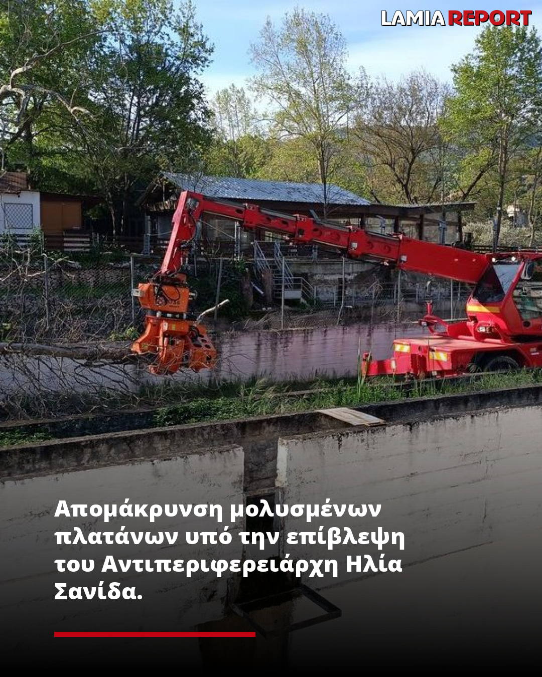 Εκεί, βρίσκονται σε εξέλιξη οι εργασίες κοπής πλατάνων που έχουν προσβληθεί από τον επιβλαβή οργανισμό καραντίνας Ceratocystis platani, ο οποίος προκαλεί την ασθένεια του μεταχρωματικού έλκους. Οι εργασίες εκτελούνται στο πλαίσιο του έργου: «Καθαρισμός, άρση προσχώσεων και αποκατάσταση βλαβών τεχνικών έργων ρεμάτων Δήμου Λαμιέων».