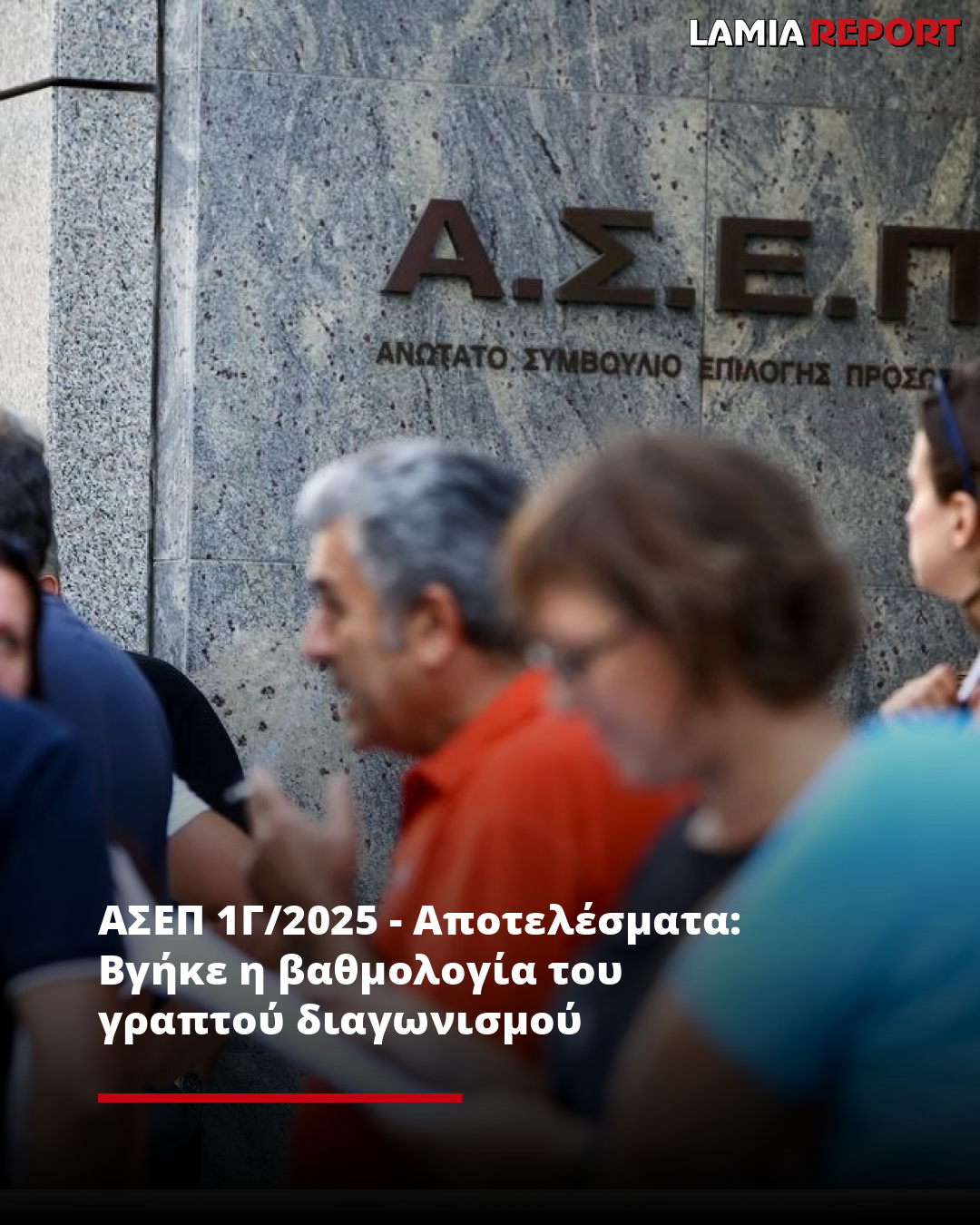 Η Κεντρική Επιτροπή Διαγωνισμού (Κ.Ε.Δ.) ανακοινώνει την έκδοση και καταχώριση στην ιστοσελίδα του Α.Σ.Ε.Π. των Πινάκων Βαθμολογίας της γραπτής ηλεκτρονικής εξέτασης των υποψηφίων Πανεπιστημιακής και Τεχνολογικής Εκπαίδευσης που έλαβαν μέρος στον Πανελλήνιο Γραπτό Διαγωνισμό (Πρόσκληση/Προκήρυξη 1Γ/2025 - Φ.Ε.Κ. 14/17.04.2025/τ. Α.Σ.Ε.Π. & Φ.Ε.Κ. 15/25.4.2025/τ. Α.Σ.Ε.Π.).