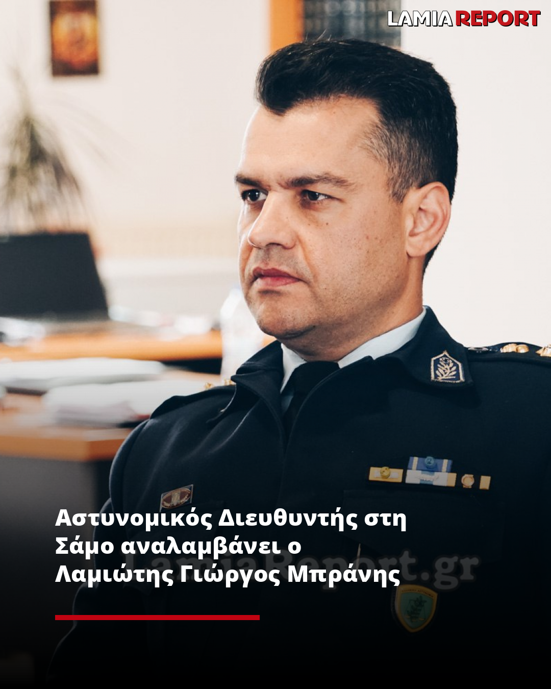 Με σημερινή (14/2/25) απόφαση του Αρχηγού της Ελληνικής Αστυνομίας, Αντιστράτηγου Δημήτρη Μάλλιου, ο Αστυνομικός Διευθυντής και Διοικητής της Άμεσης Δράσης Λαμίας, Γιώργος Μπράνης, μετατίθεται στη Διεύθυνση Αστυνομίας Σάμου, ως Διευθυντής.