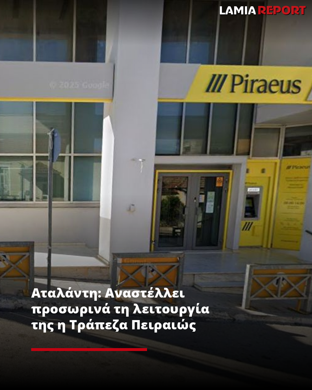 Το κατάστημα της Τράπεζας Πειραιώς στην Αταλάντη (Οίλεως & Αβραάμ) θα αναστείλει προσωρινά τη λειτουργία του λόγω εργασιών ανακαίνισης, με στόχο την αναβάθμιση της εξυπηρέτησης και της λειτουργικότητας του χώρου.