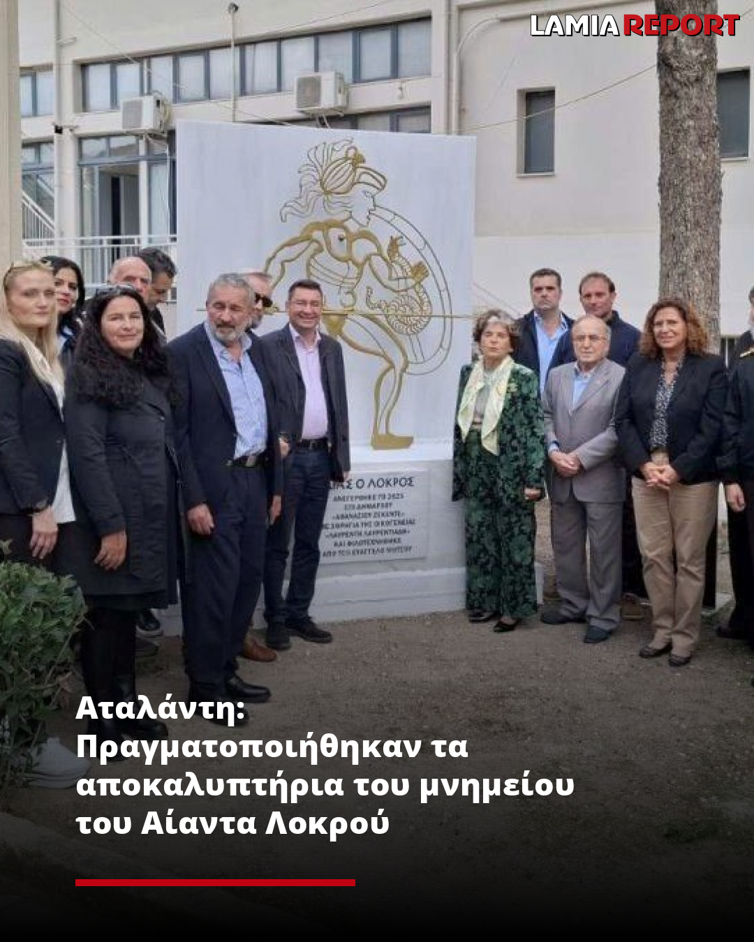 Με απόλυτη επιτυχία πραγματοποιήθηκε η εκδήλωση για τα αποκαλυπτήρια του μνημείου του μυθικού ήρωα Αίαντα Λοκρού την Τρίτη 4 Νοεμβρίου 2025 στις 12:00 στον προαύλιο χώρο της Τεχνικής Υπηρεσίας του Δήμου Λοκρών, το οποίο φιλοτέχνησε ο καλλιτέχνης κ. Ευάγγελος Μήτσου και χρηματοδότησε η οικογένεια Λαυρέντη Λαυρεντιάδη. Η εκδήλωση ξεκίνησε με χαιρετισμούς από το Δήμαρχο Λοκρών κ. Αθανάσιο Ζεκεντέ, τον δημιουργό κ. Ευάγγελο Μήτσου, τον κ. Γαβριήλ Φονιά της εταιρείας «Μάρμαρα Φονιά» και την κ. Ζαφειρία Λαυρεντιάδη, ως εκπρόσωπο της οικογένειας Λαυρεντιάδη.