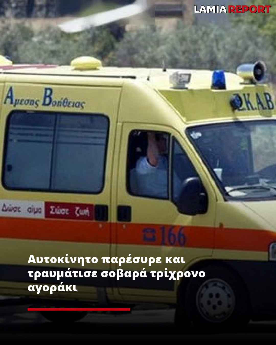 Αυτοκίνητο παρέσυρε και τραυμάτισε σοβαρά τρίχρονο αγοράκι