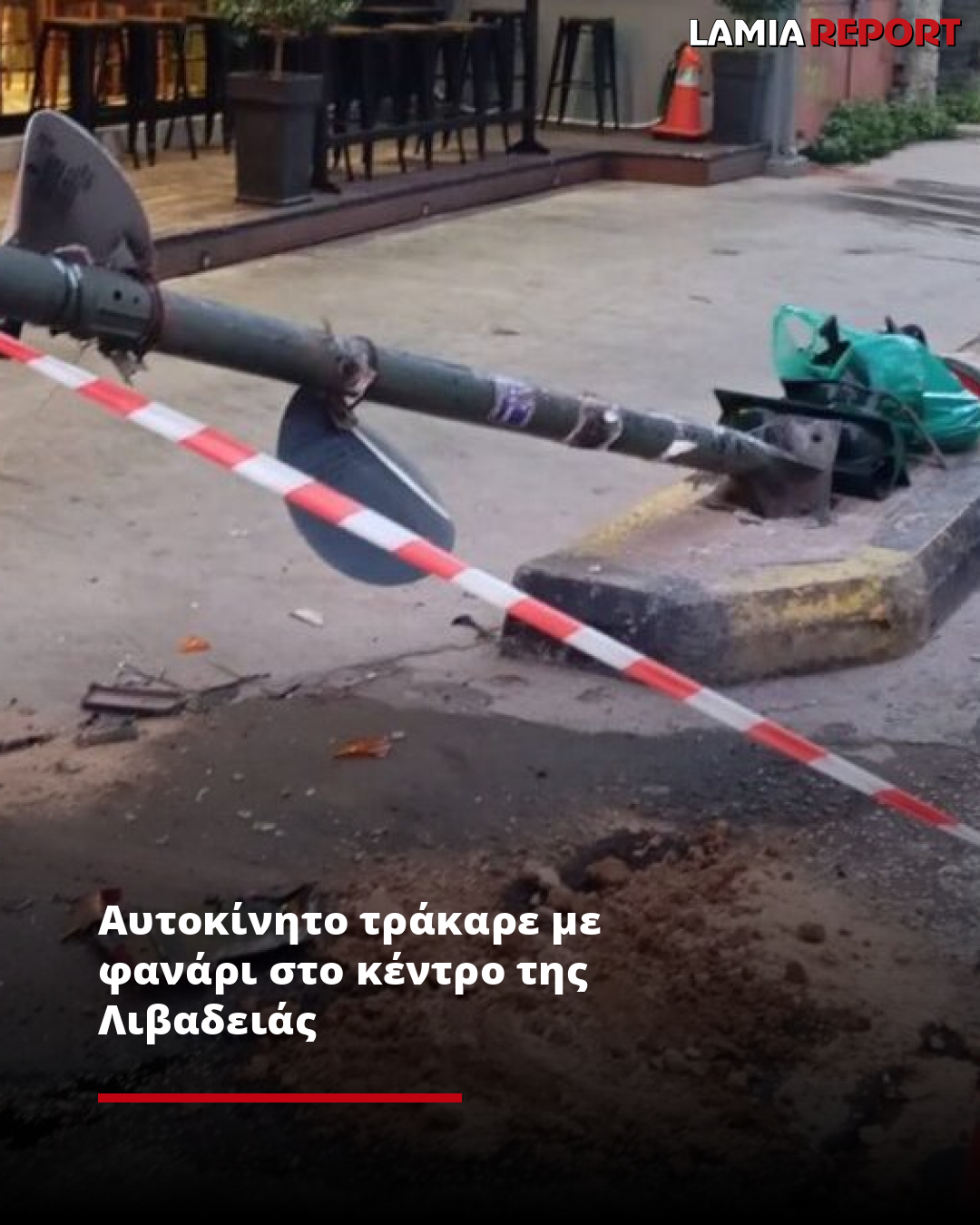 Κινούμενος, πιθανότητα με μεγάλη ταχύτητα, έπεσε πάνω στο φανάρι, στη δεξιά πλευρά του δρόμου. Αποτέλεσμα ο στύλος του φαναριού να αποκολληθεί από τη βάση του.