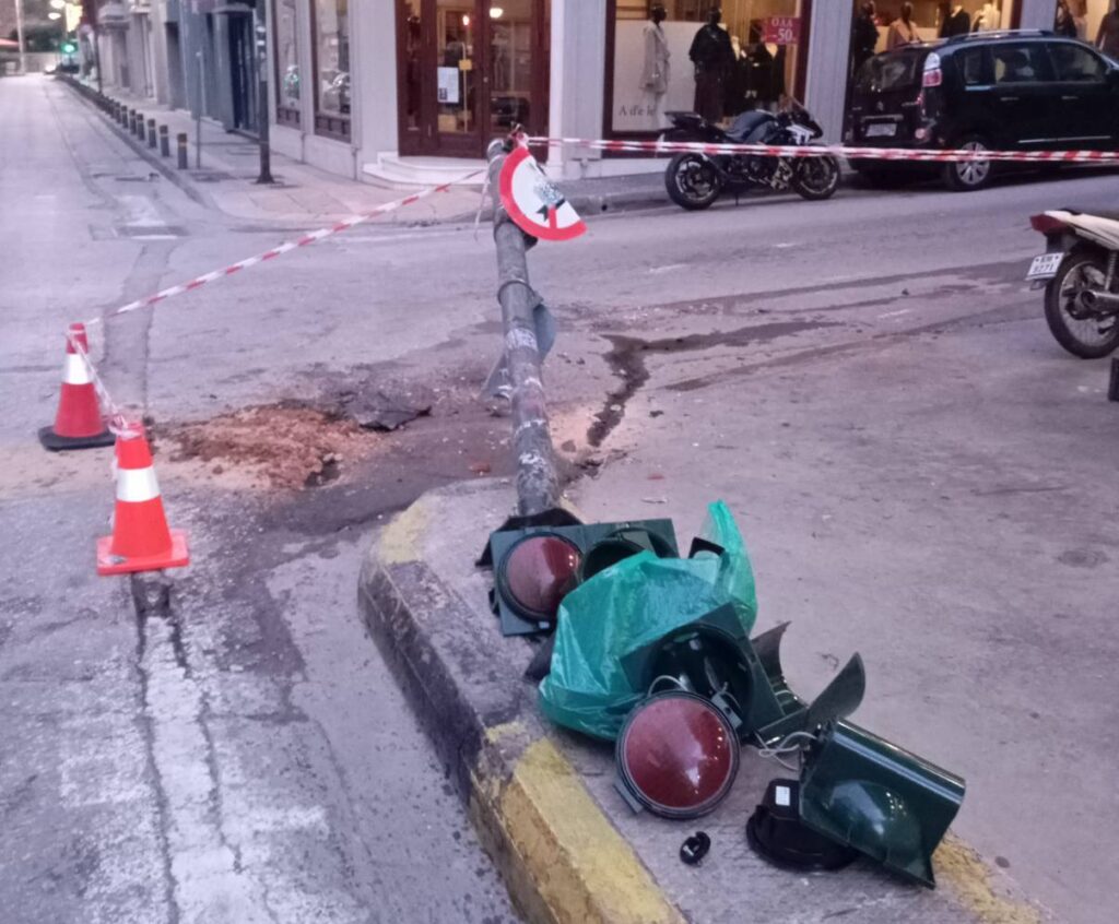 Από καθαρή τύχη γλύτωσε τα χειρότερα οδηγός οχήματος που “ξήλωσε” το φανάρι στη διασταύρωση των οδών Δημάρχου Ανδρεδάκη και Φίλωνος, τα ξημερώματα της Κυριακής (12/1).