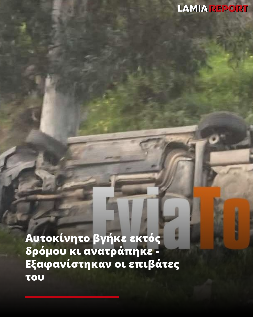 Αυτοκίνητο βγήκε εκτός δρόμου κι ανατράπηκε - Εξαφανίστηκαν οι επιβάτες του