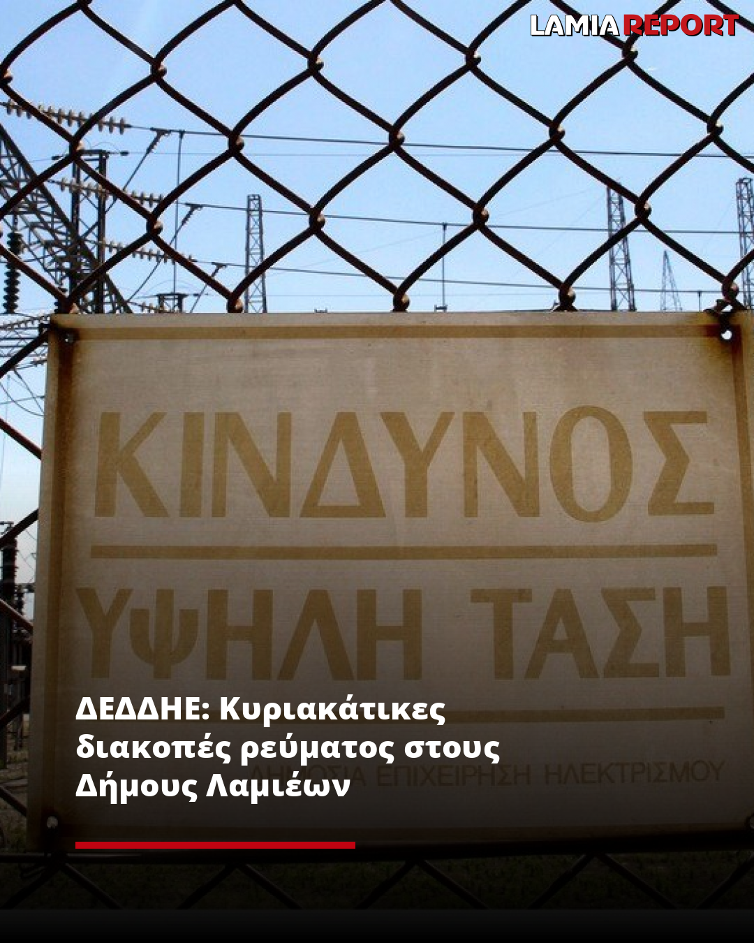 Από το Γραφείο του ΔΕΔΔΗΕ Περιοχής Λαμίας, ανακοινώθηκαν προγραμματισμένες διακοπές ρεύματος σε περιοχές των Δήμων Λαμιέων και Δομοκού, την Κυριακή 7 Σεπτεμβρίου 2025 προκειμένου να εκτελεστούν εργασίες σε δίκτυα γραμμών Mέσης και Χαμηλής Τάσης. Αναλυτικά:
