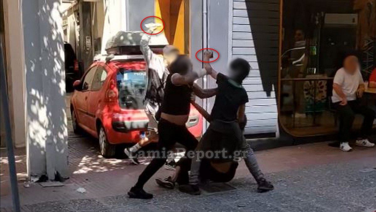Στο βίντεο έχει γίνει επεξεργασία προκειμένου να μη φαίνονται τα πρόσωπα των δραστών, ωστόσο διακρίνονται τα «όπλα» που χρησιμοποίησαν ο ένας για να πλήξει τον άλλον, μεταξύ αυτών και κομμάτια από μάρμαρο!
