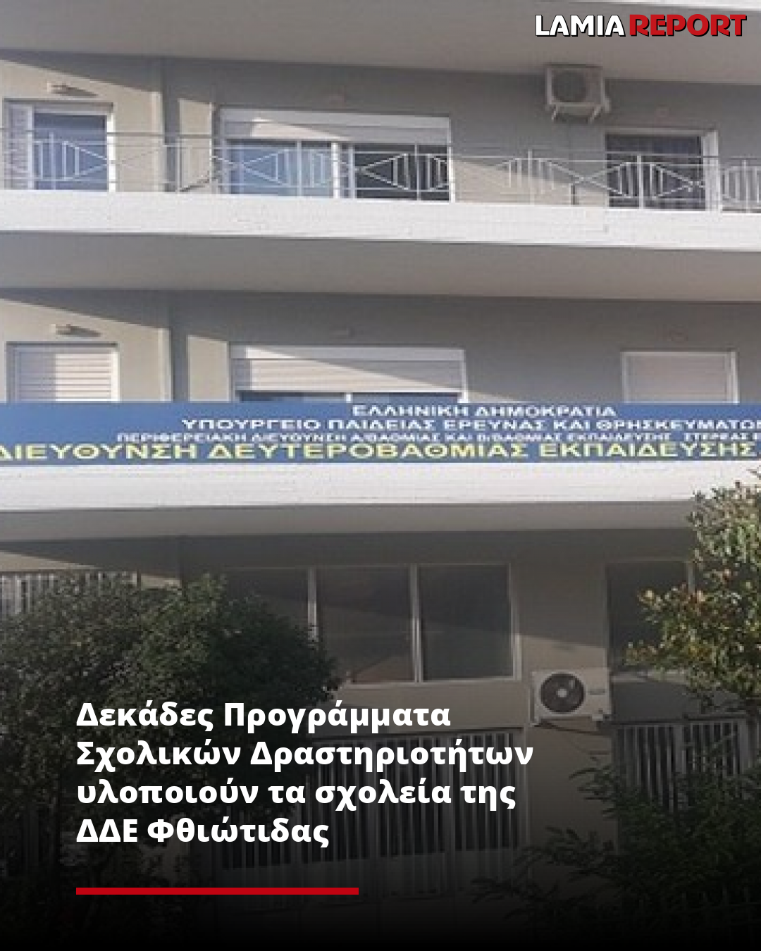 Την πραγματοποίηση 175 Προγραμμάτων Σχολικών Δραστηριοτήτων των σχολικών μονάδων Φθιώτιδας για το σχολικό έτος 2025-26, ενέκρινε ο Διευθυντής Δευτεροβάθμιας Εκπαίδευσης Φθιώτιδας Κωνσταντίνος Σπαλιώρας.
