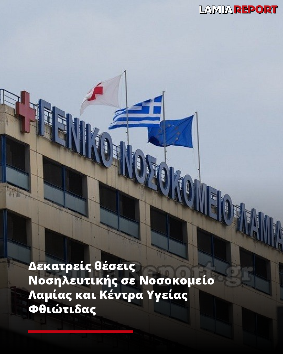 Δεκατρείς θέσεις Νοσηλευτικής σε Νοσοκομείο Λαμίας και Κέντρα Υγείας Φθιώτιδας