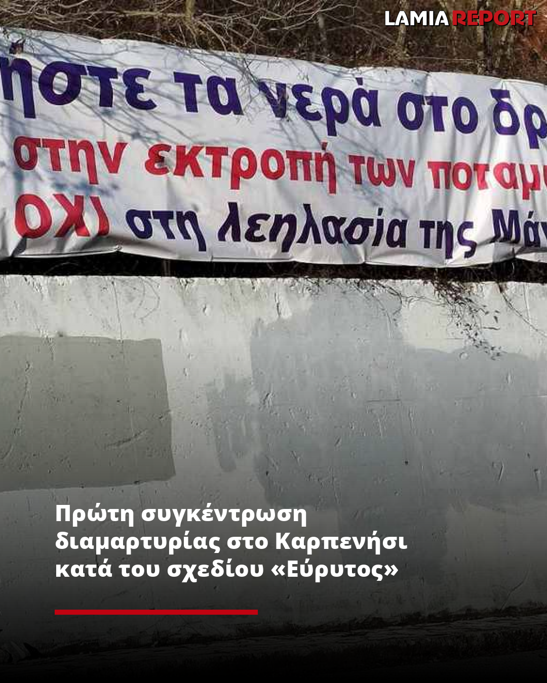 Η Επιτροπή Αγώνα ενάντια στο σχέδιο «Εύρυτος», διοργανώνει συγκέντρωση διαμαρτυρίας την Κυριακή 8 Φεβρουαρίου 2026 στις 12:00’ το μεσημέρι στην κεντρική πλατεία Καρπενησίου προκειμένου να διαδηλώσουν κατά του «φαραωνικού μεγέθους σχέδιο, που προβλέπει εκτροπή του Κρικελλοπόταμου και του Καρπενησιώτη προς τον Εύηνο και τον Μόρνο».