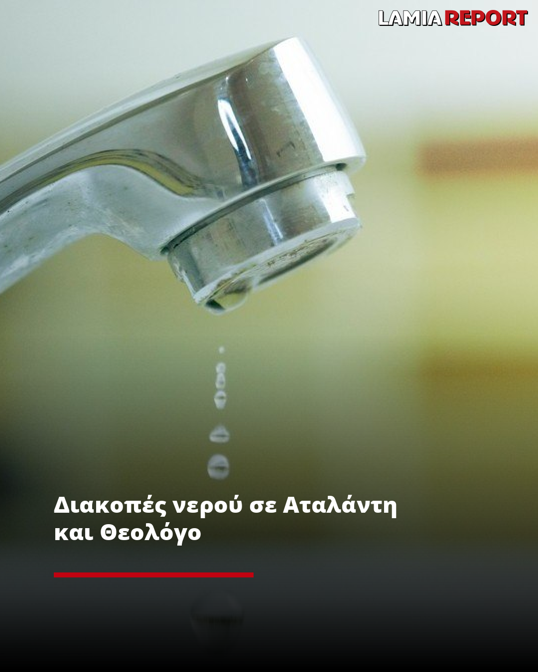 Ο Δήμος Λοκρών ενημέρωσε σήμερα Δευτέρα 13/10/2025 για διακοπές στην υδροδότησης λόγω βλάβης αγωγών, στην Αταλάντη στις οικείες που υδρεύονται από τις δεξαμενές «ΠΑΖΑΡΙ» και «ΔΙΔΥΜΕΣ» , από 08:30 π.μ. και κατ’ εκτίμηση έως 11:30 π.μ. και στoν Θεολόγο, από 09:00 π.μ. και κατ’ εκτίμηση έως 11:00 π.μ.
