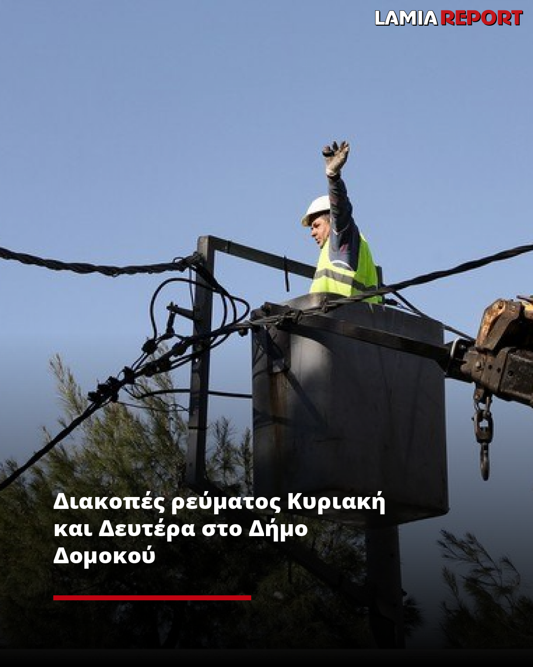 Διακοπές ρεύματος Κυριακή και Δευτέρα στο Δήμο Δομοκού
