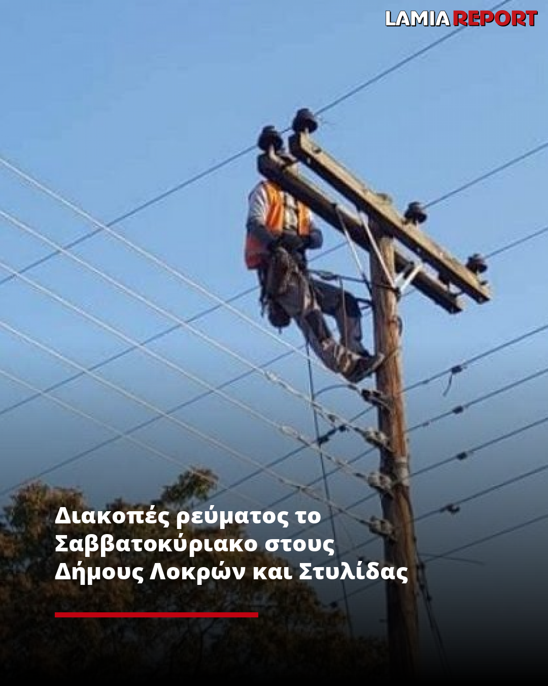 Εργασίες στο δίκτυο Μέσης και Χαμηλής Τάσης, κατά περίπτωση, θα πραγματοποιηθούν κι αυτό το Σαββατοκύριακο 26-27 Απριλίου 2025 από τα συνεργεία του ΔΕΔΔΗΕ στους Δήμους Λοκρών και Στυλίδας. Για το λόγο αυτόν έχουν προγραμματιστεί διακοπές ρεύματος.