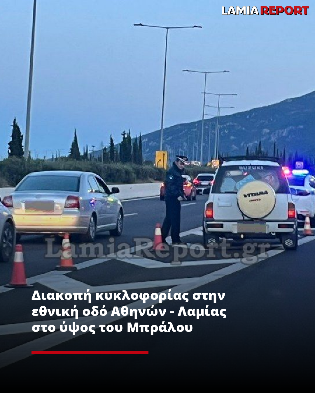 Διακοπή κυκλοφορίας στην εθνική οδό Αθηνών - Λαμίας στο ύψος του Μπράλου
