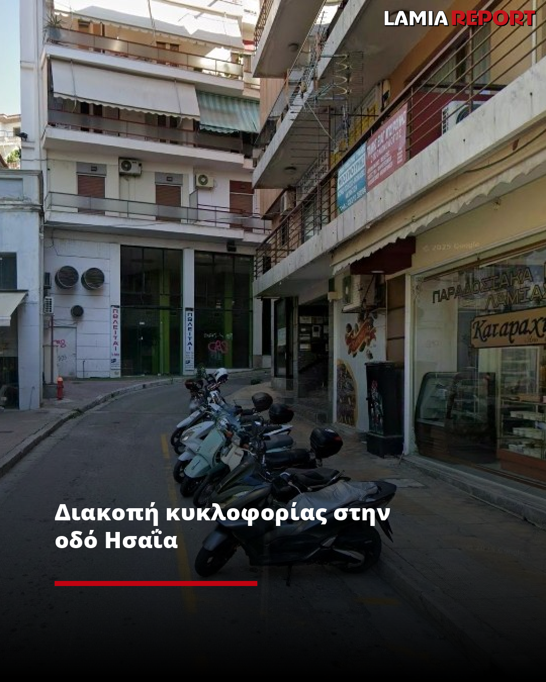 Η Διεύθυνση Υποδομών και Τεχνικών έργων του Δήμου Λαμιέων ενημερώνει ότι τη Δευτέρα 24 Νοεμβρίου 2025, από τις 06:00 π.μ. έως τις 08:00 π.μ., θα γίνει διακοπή της κυκλοφορίας των οχημάτων στο τμήμα της οδού Ησαΐα που βρίσκεται μεταξύ των οδών Όθωνος και Αγίου Νικολάου.