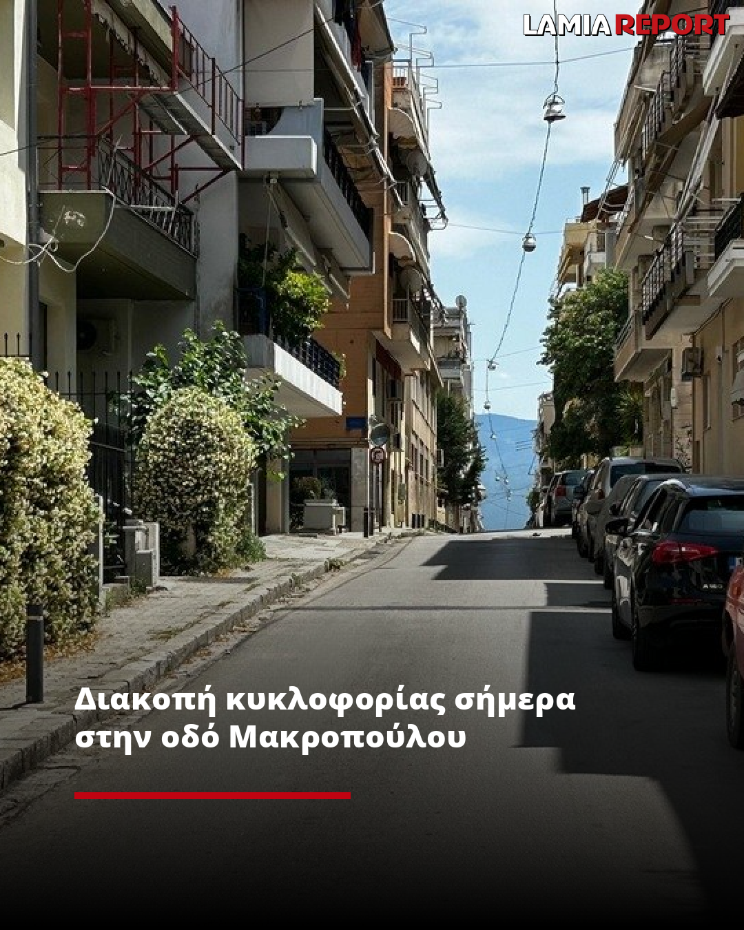 Η Διεύθυνση Γεωτεχνικών Υπηρεσιών & Τοπικής Ανάπτυξης του Δήμου Λαμιέων ενημερώνει ότι αύριο, Πέμπτη 22 Μαΐου και από ώρα 07:30 π.μ. έως 12:00, θα γίνει διακοπή της κυκλοφορίας στην οδό Μακροπούλου (πρώην κτήριο 1ου ΚΑΠΗ), για την εκτέλεση εργασιών πρασίνου.