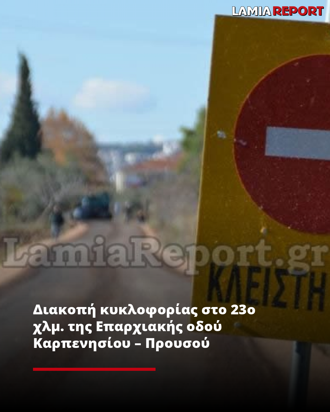 Διακοπή κυκλοφορίας στο 23ο χλμ. της Επαρχιακής οδού Καρπενησίου - Προυσού (μετά την θέση «Διπόταμα» και τη διασταύρωση Καστανούλας) από 28 Απριλίου έως 16 Μαΐου 2025, καθημερινώς και εκτός των ημερών Σαββάτου και Κυριακής, ανακοίνωσε ο Αντιπεριφερειάρχης ΠΕ Ευρυτανίας Αριστείδης Τασιός.