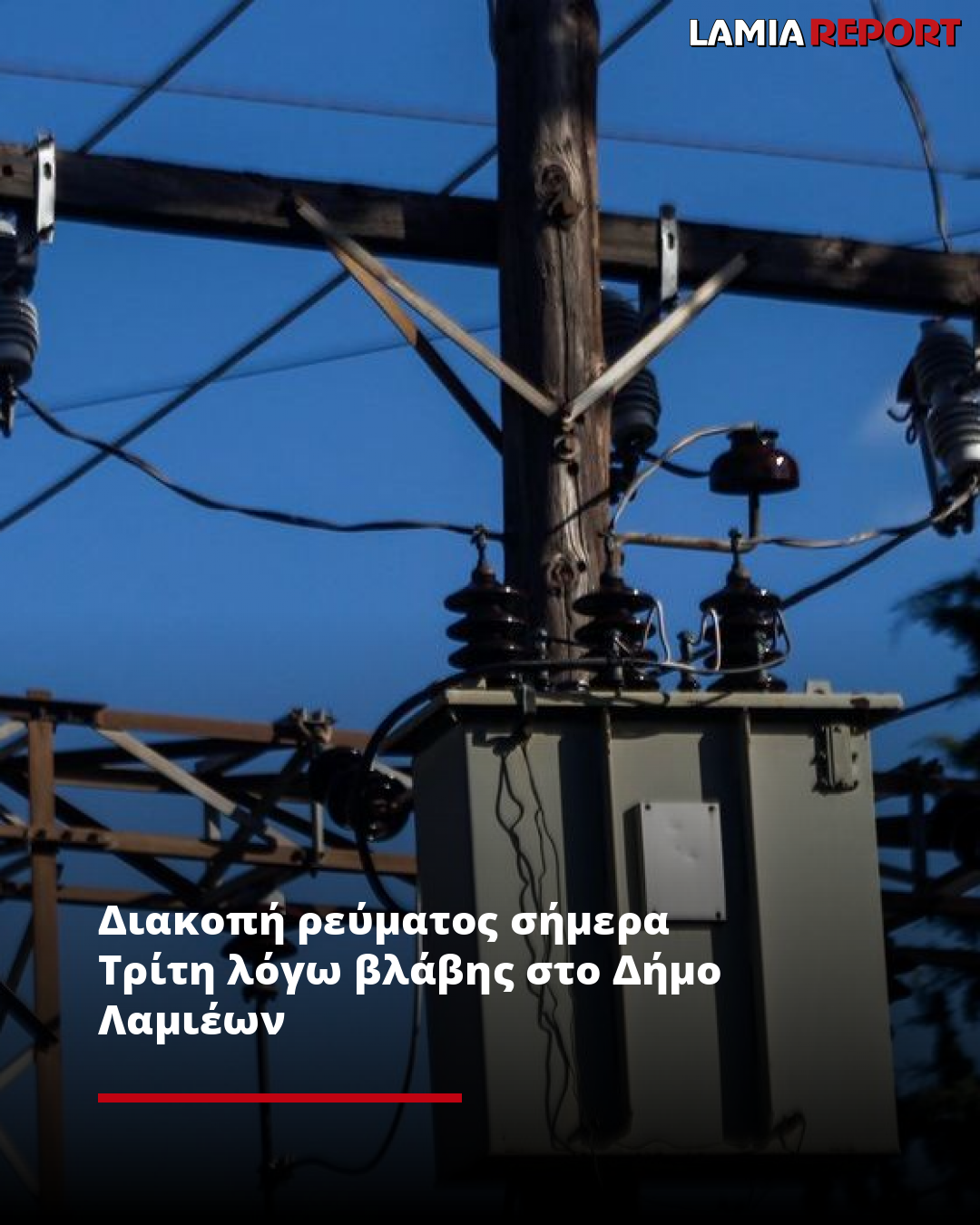 Σύμφωνα με ενημέρωση του ΔΕΔΔΗΕ Περιοχή Λαμίας, εκτάκτως λόγω βλάβης και προκειμένου να εκτελεστούν εργασίες στο δίκτυο την Τρίτη 21 Οκτωβρίου 2025, έχει προγραμματιστεί διακοπή ρεύματος στο Δήμο Λαμιέων.